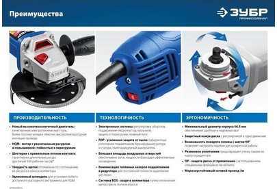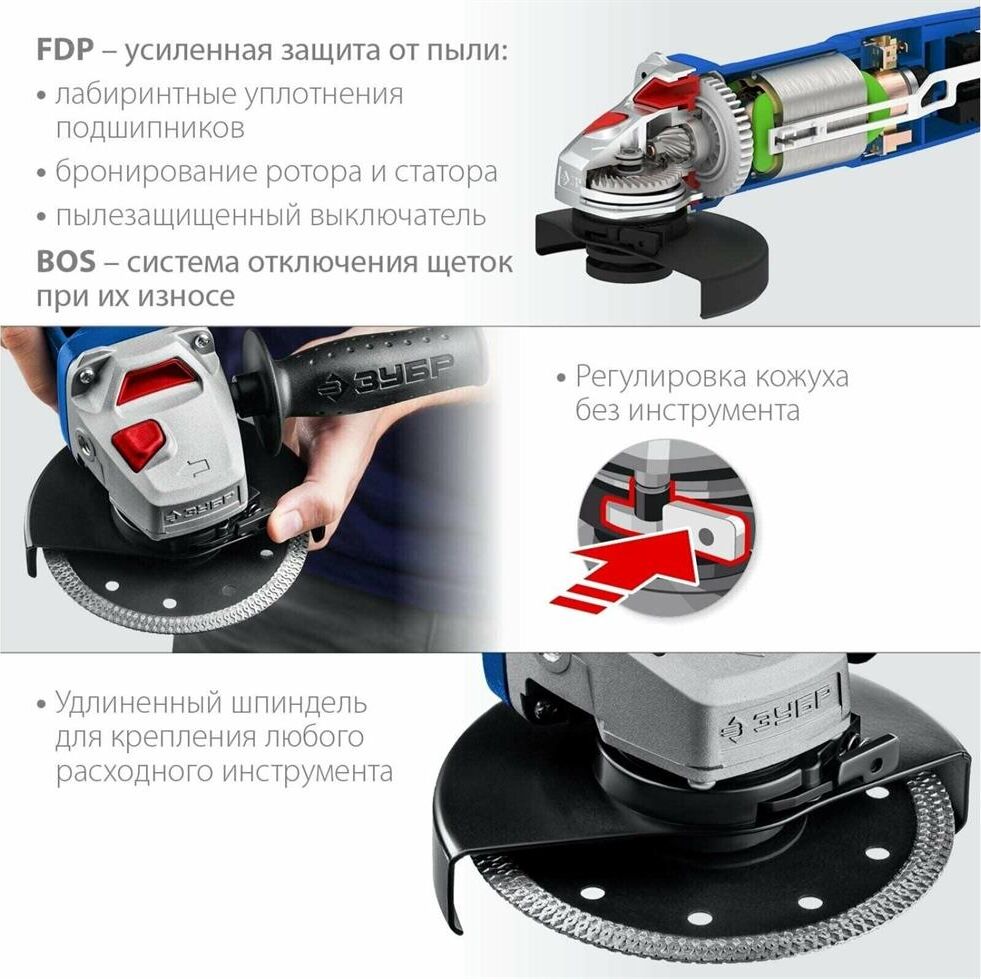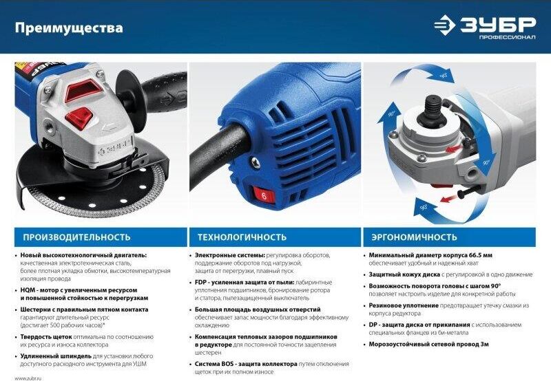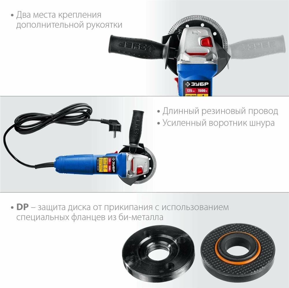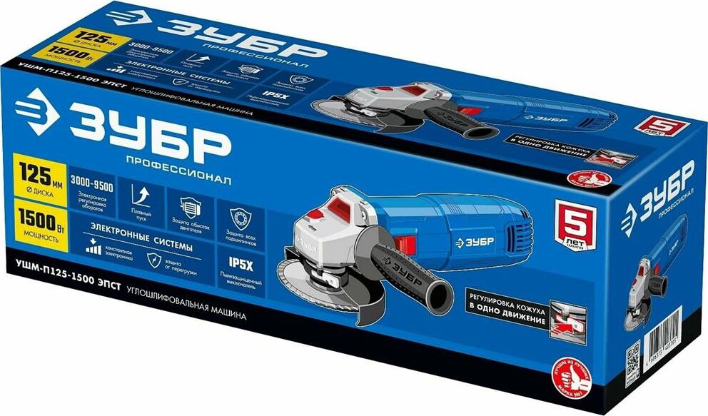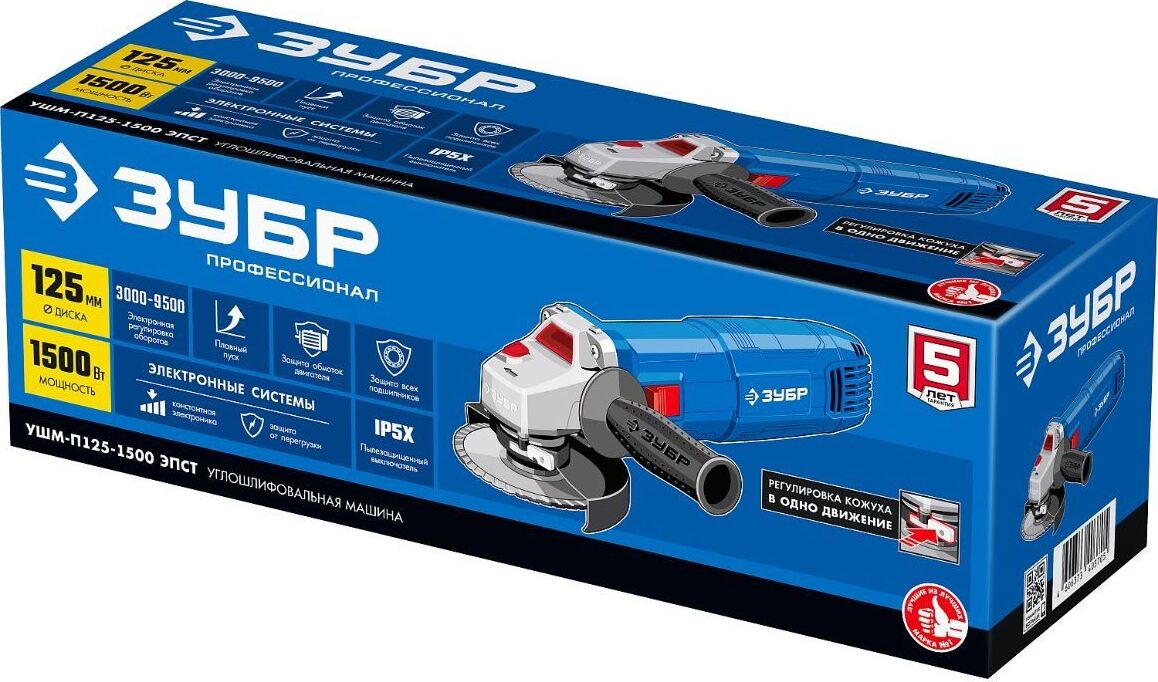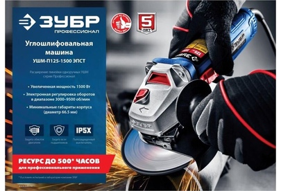 ЗУБР УШМ-П125-1500 ЭПСТ УШМ 125 мм, 1500 Вт, регулировка оборотов, серия Профессионал.