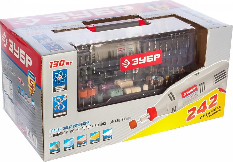 ЗУБР ЗГ-130ЭК H242 Гравер электрический с набором мини-насадок 242 шт