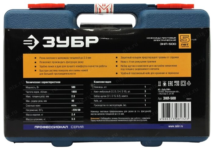 ЗУБР ЗНЛ-500 Ножницы листовые 500 Вт, 1800 об/мин