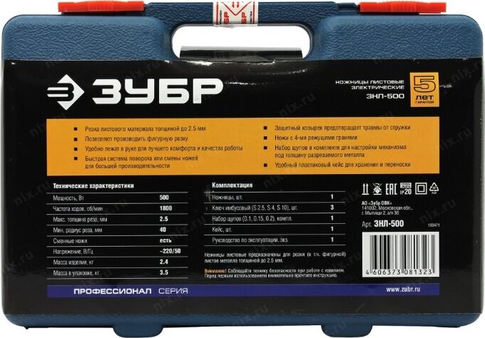 ЗУБР ЗНЛ-500 Ножницы листовые 500 Вт, 1800 об/мин
