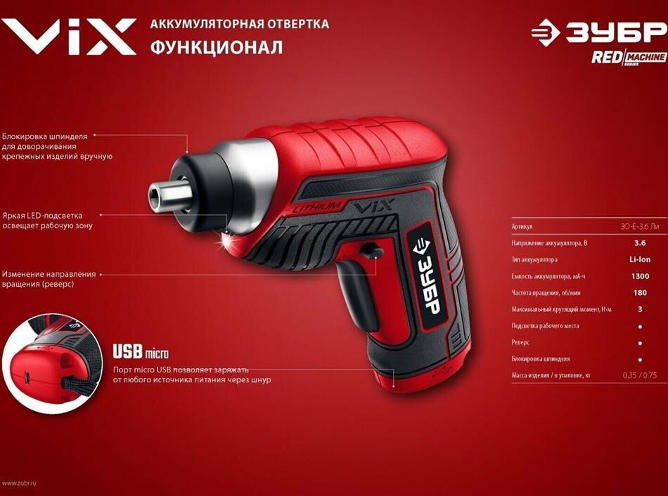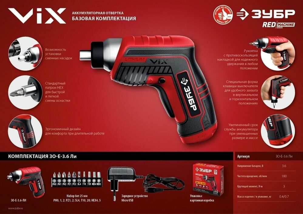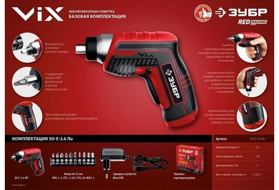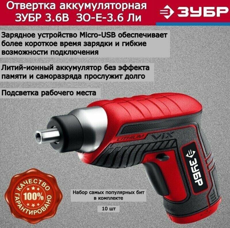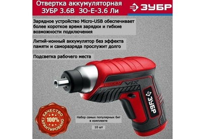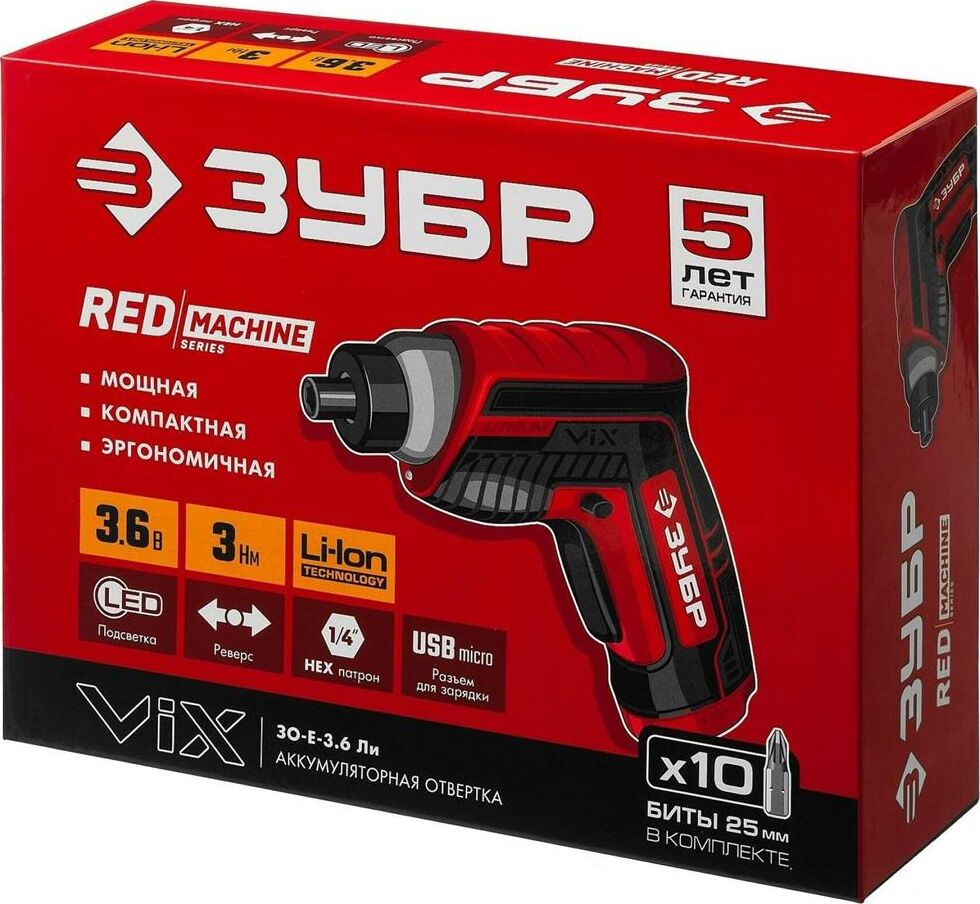 ЗУБР ЗО-Е-3.6 Ли VIX отвертка аккумуляторная 3.6 В, в коробке