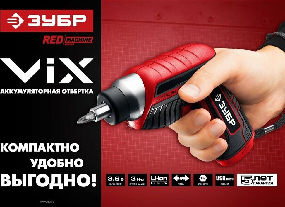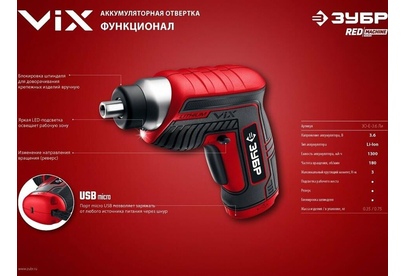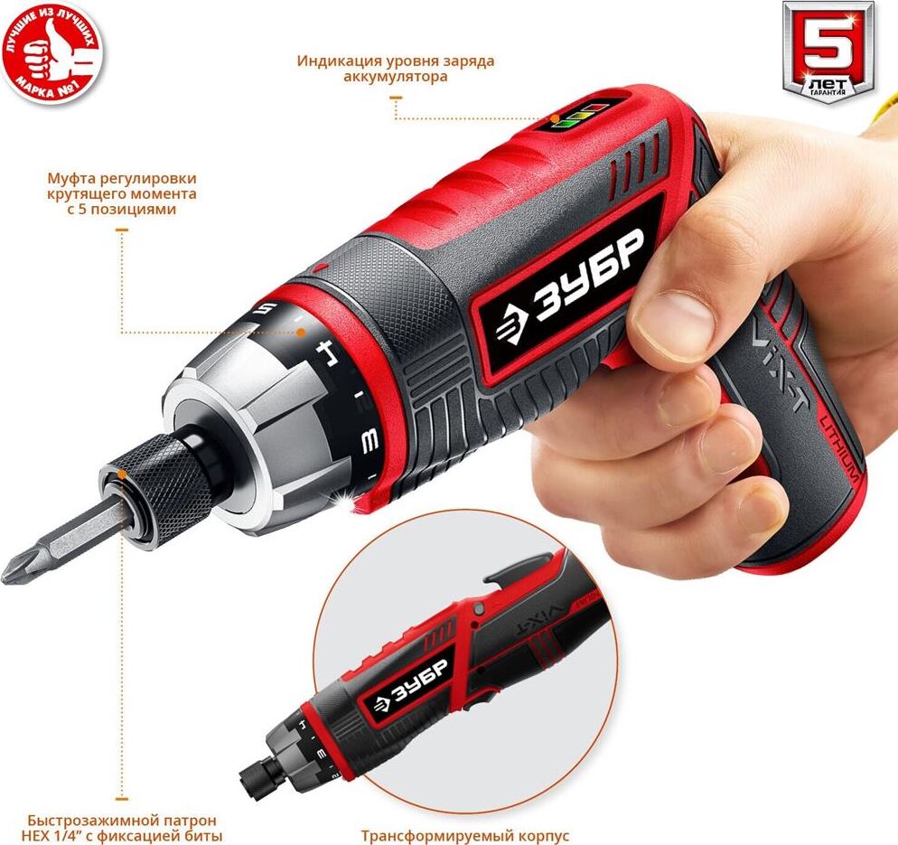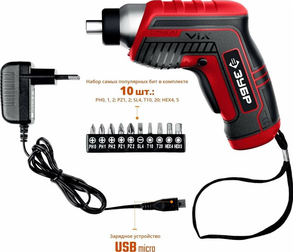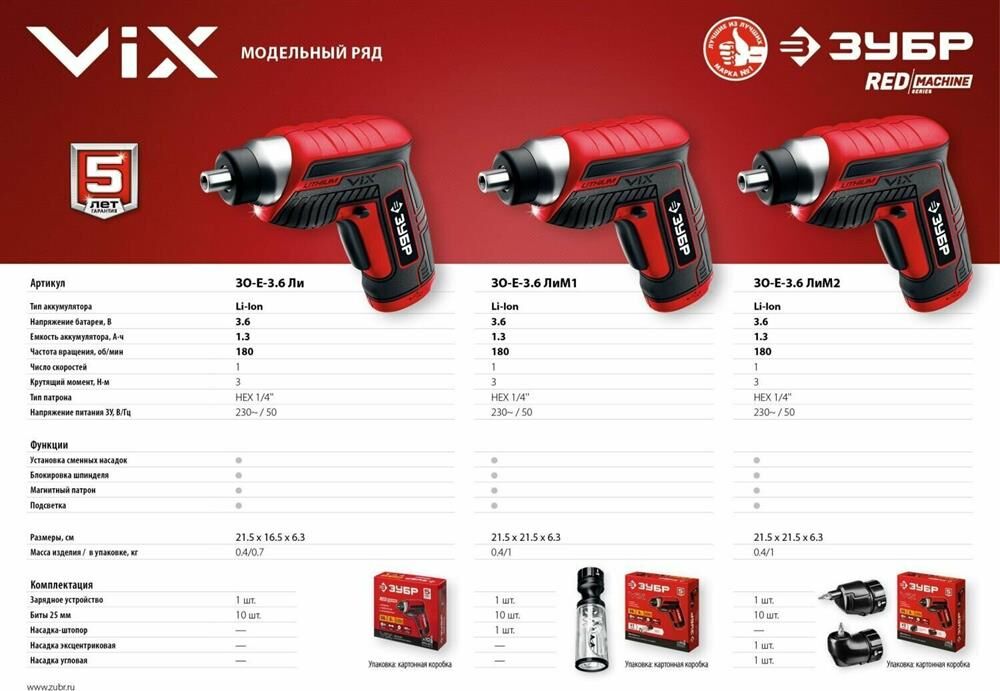 ЗУБР ЗО-Е-3.6 Ли VIX отвертка аккумуляторная 3.6 В, в коробке
