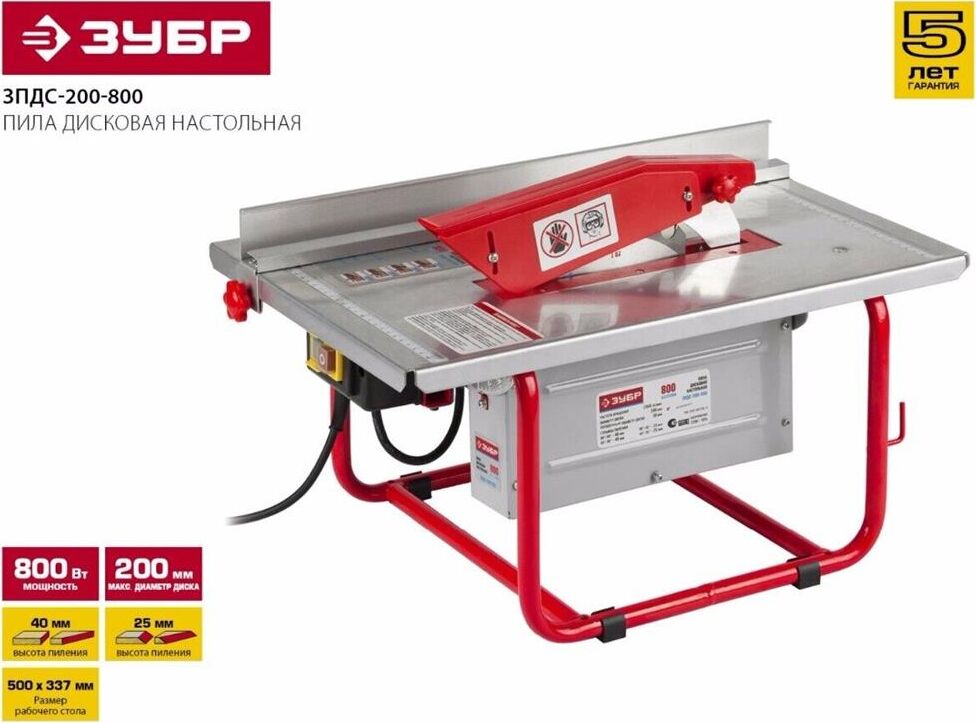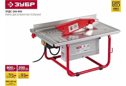 ЗУБР ЗПДС-200-800 Пила дисковая настольная 800 Вт, 2950 об/мин, 200 мм