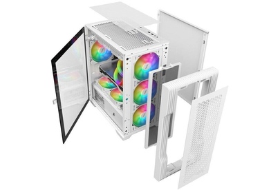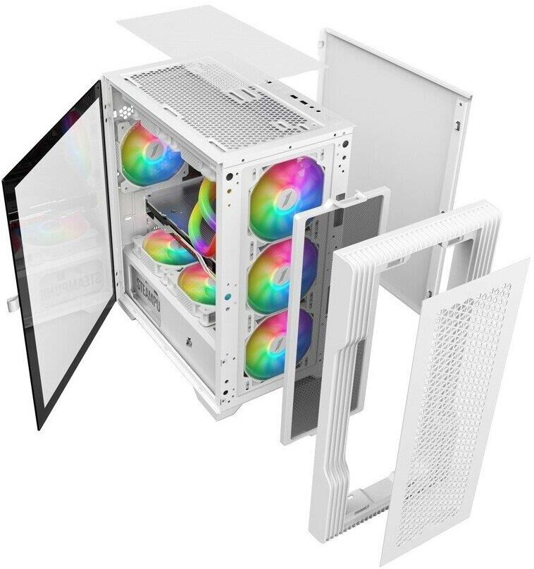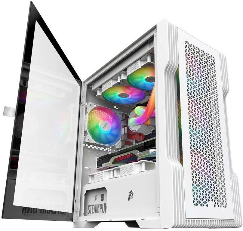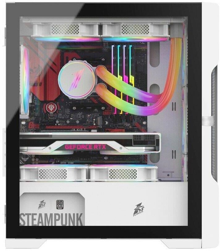 1STPLAYER Корпус TRILOBITE T3-G White / mATX, TG 4x 120mm LED fans inc. T3-G-WH-4F1-W