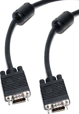 VGA (DE15F) — 15-контактный субминиатюрный разъём для подключения аналоговых мониторов по стандарту VGA (англ. Video Graphics Array). Используется для передачи RGB видеосигнала на монитор. VGA — аналоговый интерфейс, предназначенный для мониторов на электронно-лучевых трубках (ЭЛТ). Также данным интерфейсом оснащаются некоторые проигрыватели DVD, плазменные и ЖК-телевизоры. VGA передаёт сигнал построчно. Ферритовые кольца в начале и в конце кабеля установлены для защиты от помех. Спецификация Разъемы: VGA 15M / 15M Ферритовые кольца: есть Позолоченные контакты: - Длина (м): 10