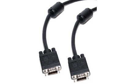 VGA (DE15F) — 15-контактный субминиатюрный разъём для подключения аналоговых мониторов по стандарту VGA (англ. Video Graphics Array). Используется для передачи RGB видеосигнала на монитор. VGA — аналоговый интерфейс, предназначенный для мониторов на электронно-лучевых трубках (ЭЛТ). Также данным интерфейсом оснащаются некоторые проигрыватели DVD, плазменные и ЖК-телевизоры. VGA передаёт сигнал построчно. Ферритовые кольца в начале и в конце кабеля установлены для защиты от помех. Спецификация Разъемы: VGA 15M / 15M Ферритовые кольца: есть Позолоченные контакты: - Длина (м): 15