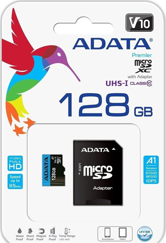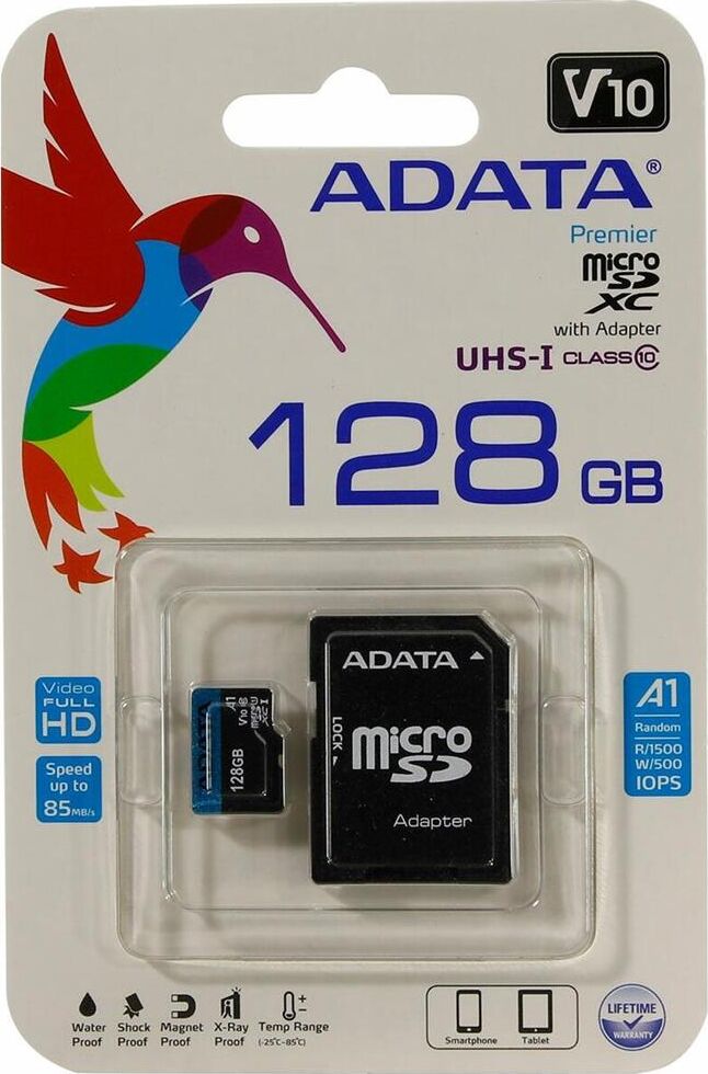 Карта памяти ADATA microSD 128GB microSDHC Class 10 UHS-I A1 100/25 MB/s (SD адаптер)