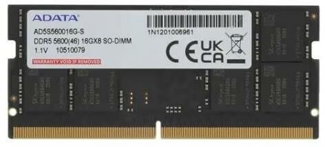 A-DATA Оперативная память AD5S560016G-S DDR5 - 1x 16ГБ 5600МГц, для ноутбуков (SO-DIMM), Ret