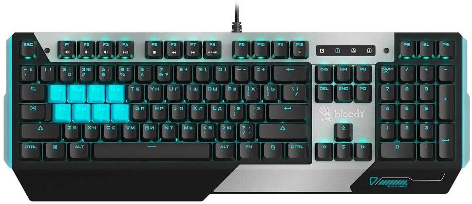 A4TECH Клавиатура B865 механическая серый/черный USB for gamer LED (B865 ICE BLUE) кабель 1.8м
