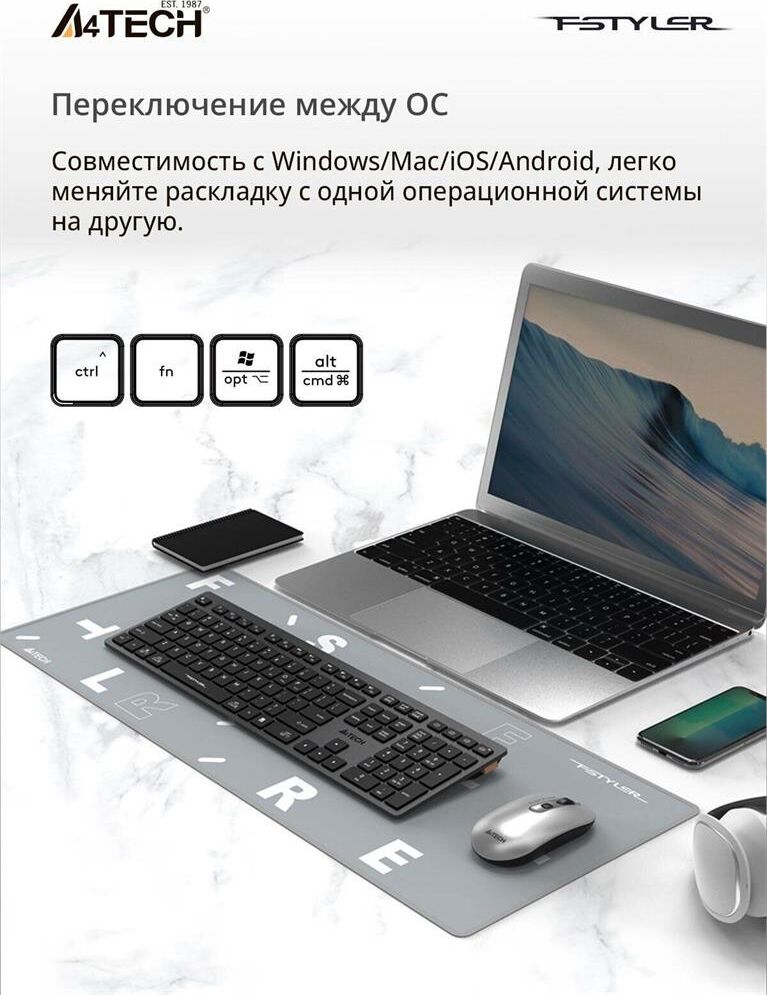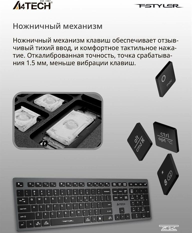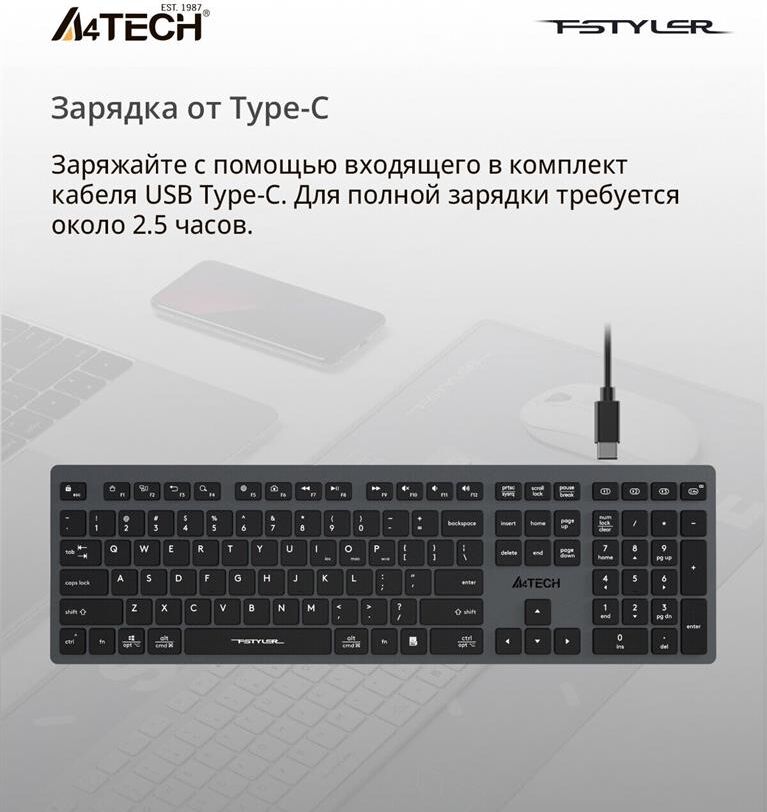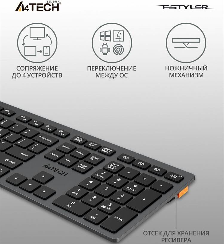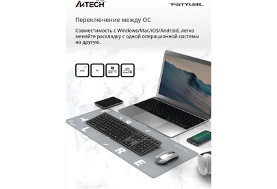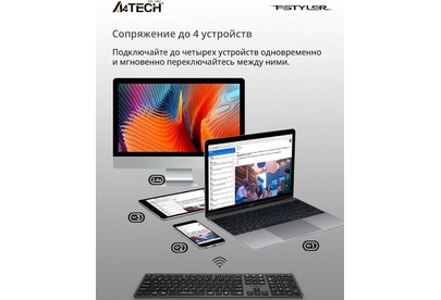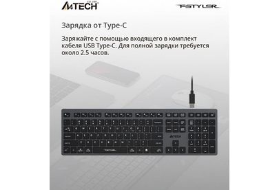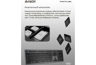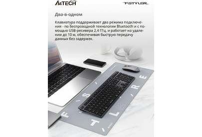 A4TECH Клавиатура беспроводная Fstyler FBX50C grey (USB, BT/Radio, 109 клавиш, slim, multimedia) (FB