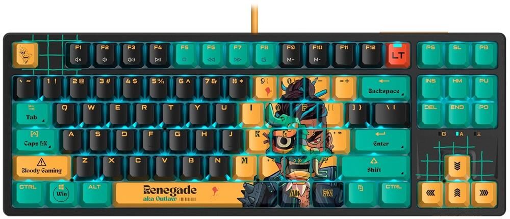 A4TECH Клавиатура Bloody AT87 Renegade, USB, оптомеханическая, черный/зеленый