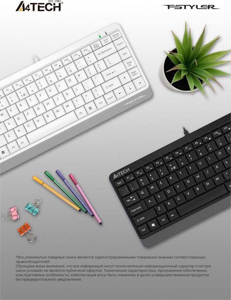 A4TECH Клавиатура FK11 черный USB slim (FK11 USB (GREY)) кабель 1.5м