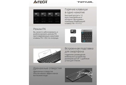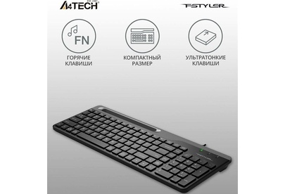 A4TECH Клавиатура FK25 черный/серый USB slim (FK25 BLACK) кабель 1.5м