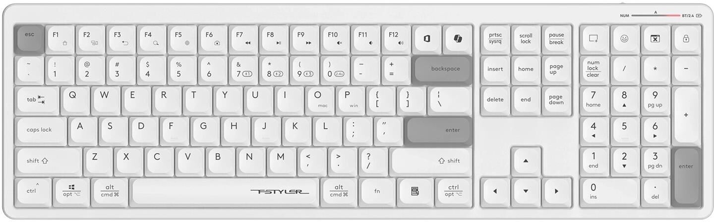 A4TECH Клавиатура Fstyler FBX55C, USB, Bluetooth/Радиоканал, белый