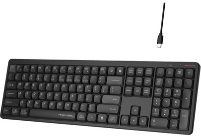 Интерфейс: USB. Тип беспроводного соединения клавиатуры: Bluetooth/Радиоканал. Мультимедийные дополнительные клавиши: есть. Обычная/тонкая: тонкая(slim). Клавиатура с русскими буквами: ДА. Особенности: Клавиатура поддерживает два режима подключения - Bluetooth и с помощью USB-ресивера 2,4 ГГц. Работает с PC и Mac. Встроенная перезаряжаемая литиевая батарея емкостью 300 мАч позволяет использовать ее до 8 месяцев при полной зарядке.Ножки с двумя углами наклона по высоте 5° / 8°. Дизайн клавиш: квадратные. Радиус действия клавиатуры: 10. Количество элементов питания: 1. Тип элементов питания: собственный Li-ion аккумулятор. Цвет английских букв: белый. Цвет русских букв: белый. Материал корпуса: пластик. Вес: 0.71. Тип соединения: беспроводная. Количество клавиш: 110. Габариты упаковки (ед) ДхШхВ: 0.495x0.182x0.03. Вес упаковки (ед): 0.97. Страна производитель: Китай. Комплектация: USB-ресивер, адаптер Type-C, документация, кабель USB. Гарантия: 12 мес.. Размеры клавиатуры (ШхВхТ): 437 х 18 х 133 мм. Цвет: и чер
