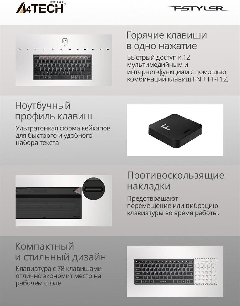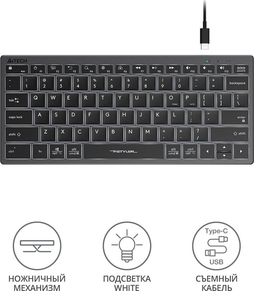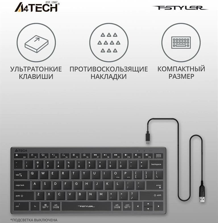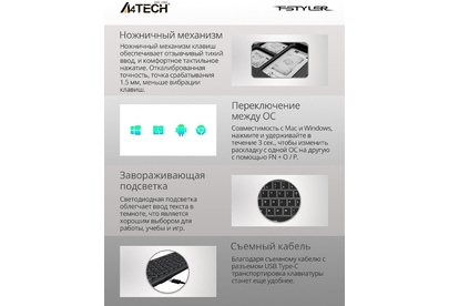A4TECH Клавиатура Fstyler FX61 белый USB slim LED (FX61 WHITE)