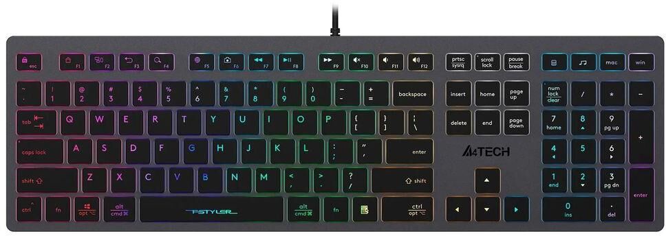 A4TECH Клавиатура FX60 серый USB slim LED (FX60 GREY / NEON) кабель 1.5м