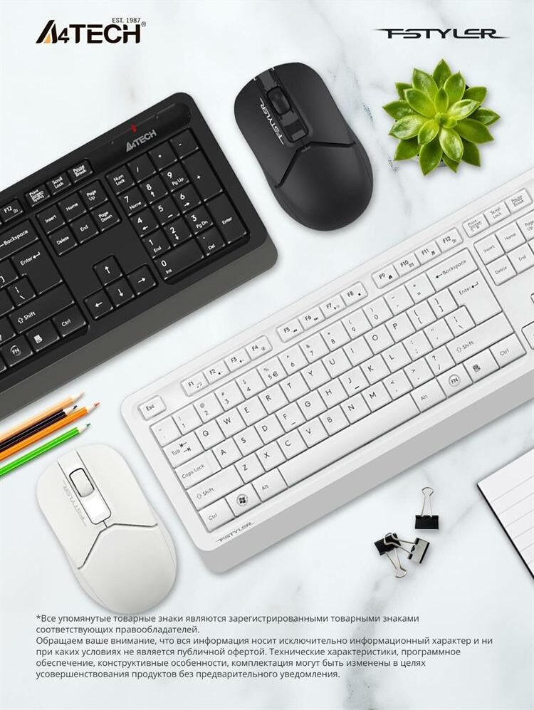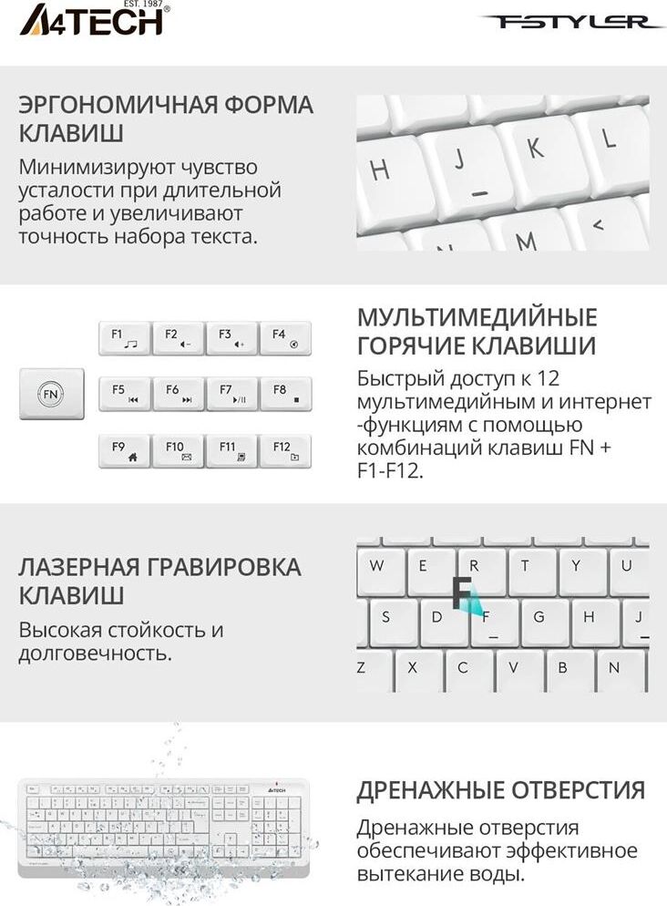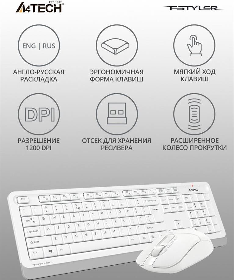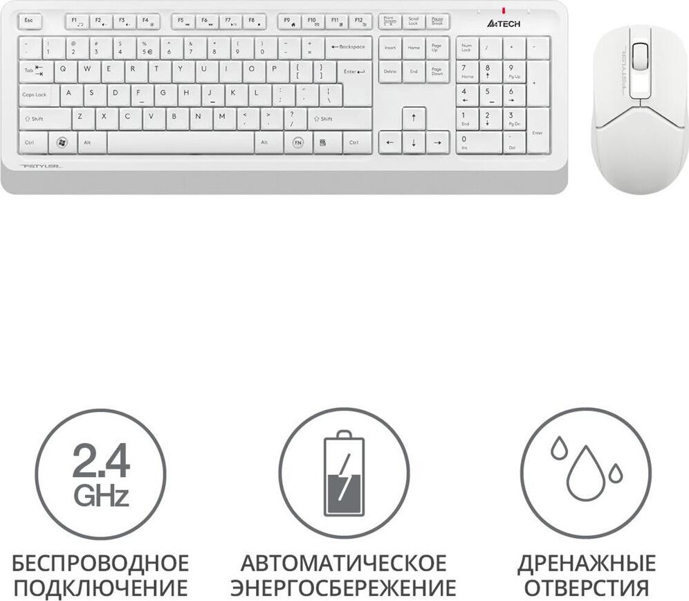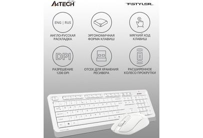 A4TECH Клавиатура + мышь Fstyler FG1012 клав:белый мышь:белый USB беспроводная Multimedia (FG1012 WH