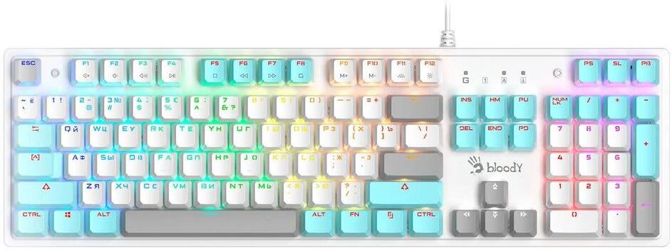 A4TECH Клавиатура S510N механическая белый USB for gamer LED (S510N (ICY WHITE )) кабель 1.8м
