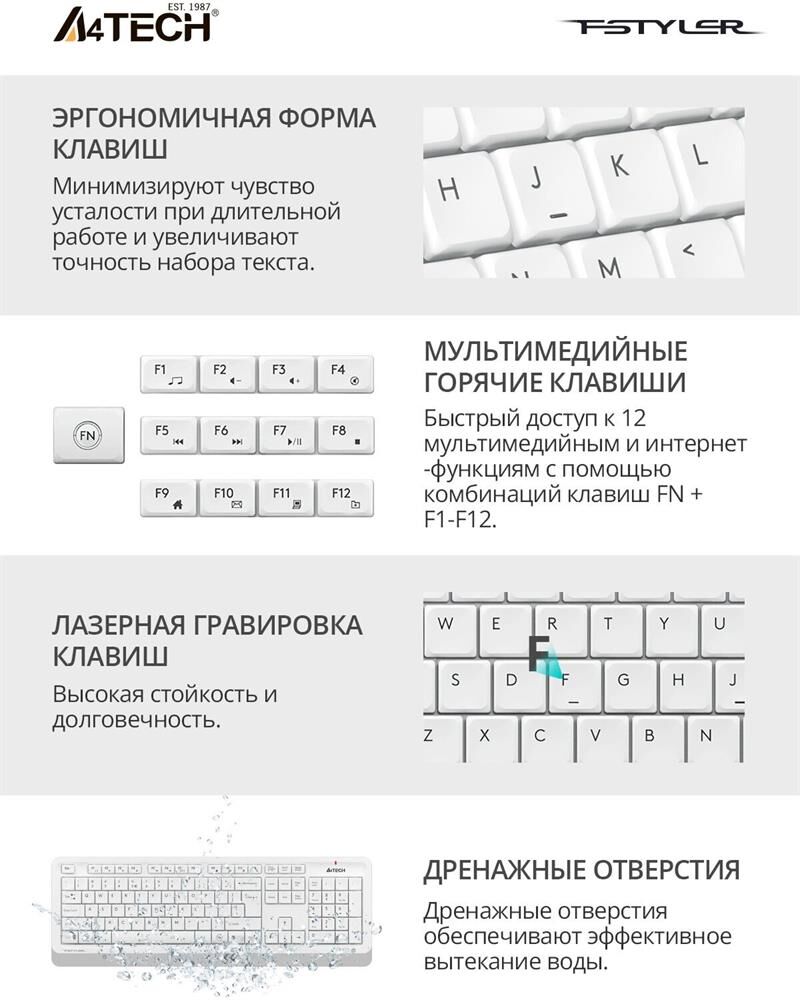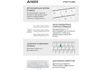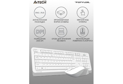 A4TECH Комплект (клавиатура+мышь) Fstyler FG1010, USB, беспроводной, белый [fg1010 white]