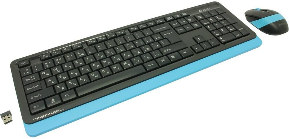 A4TECH Комплект (клавиатура+мышь) Fstyler FG1010, USB, беспроводной, черный и синий [fg1010 blue]