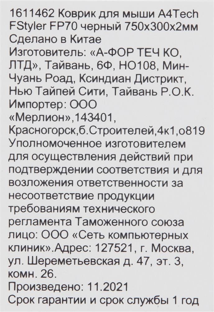 A4TECH Коврик для мыши FStyler FP70 (XL) черный, ткань, 750х300х2мм [fp70 black]