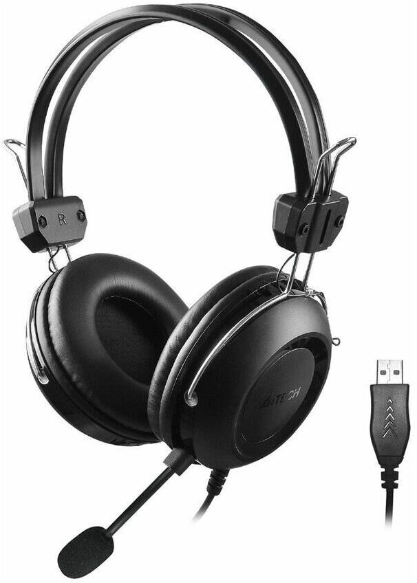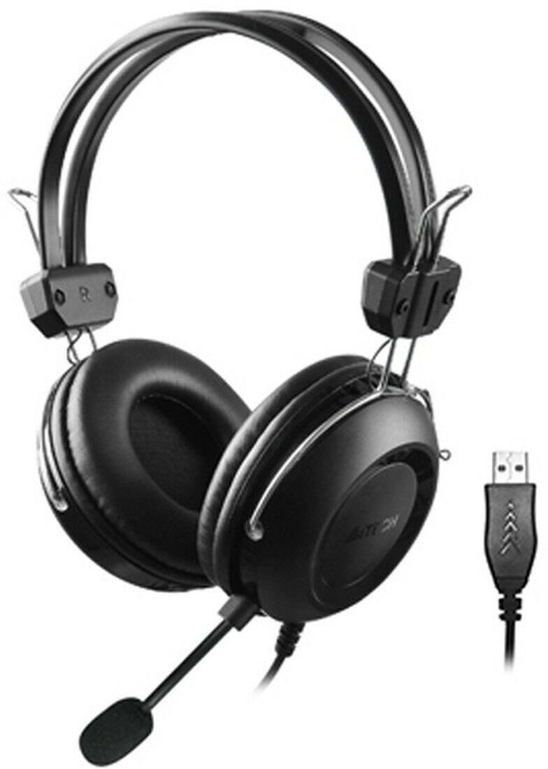 A4TECH Наушники накладные с микрофоном ComfortFit HU-35 black (проводные, кабель 2м, USB) (HU-35)