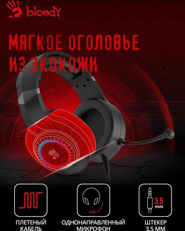A4TECH Наушники с микрофоном Bloody G220 черный 2м мониторные оголовье (G220 AUX3.5-4PIN + USB)