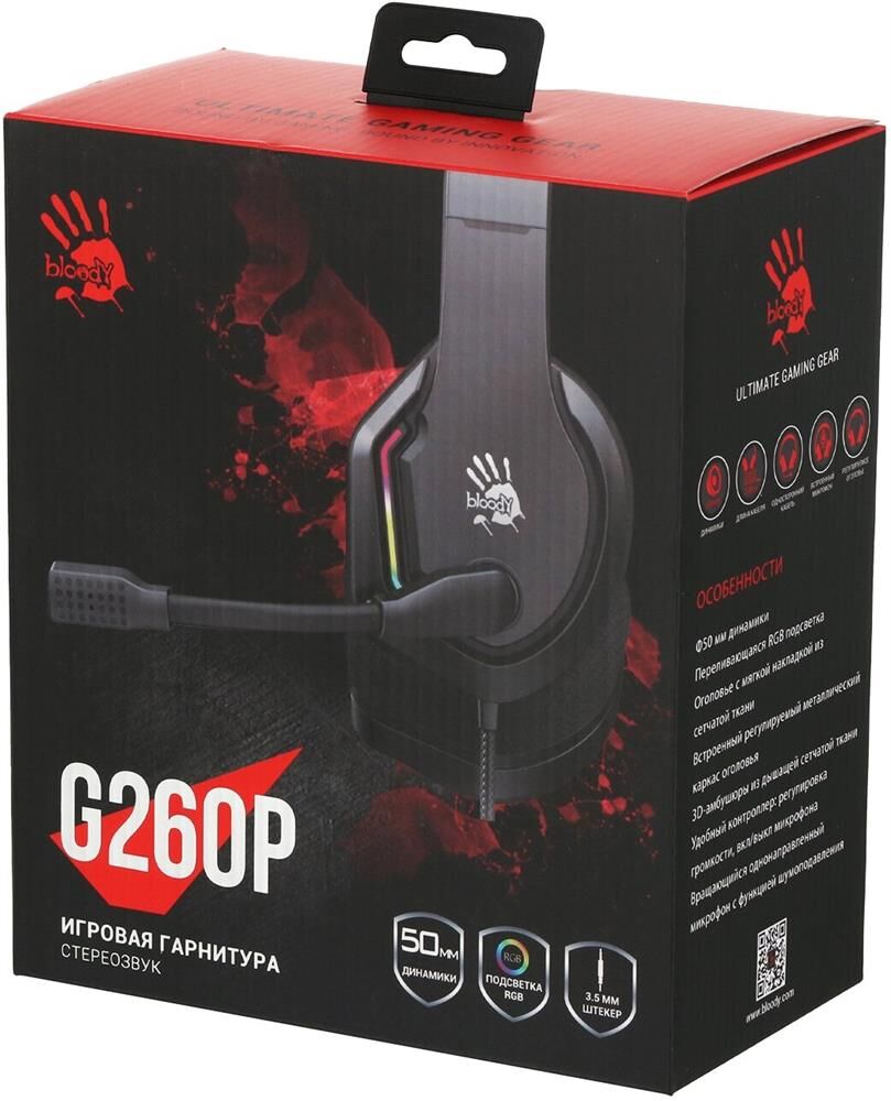 A4TECH Наушники с микрофоном Bloody G260p черный 2м мониторные USB оголовье (G260P)