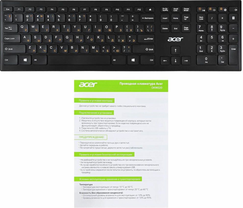 ACER Клавиатура OKR010 черный USB беспроводная slim Multimedia (ZL.KBDEE.003)