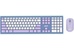Интерфейс подключения: USB. Тип соединения клавиатуры: беспроводной. Клавиатура Slim-дизайна: да. Питание клавиатуры от: 2xAAA. Тип мыши: оптическая. Разрешение сенсора максимальное: 1200. Количество кнопок мыши: 3. Питание мыши: 1xAA. Радиус действия: 10. Мультимедийные дополнительные клавиши: есть. Клавиши островного типа: есть. Дизайн клавиш: квадратные. Цвет английских букв: серый. Цвет русских букв: серый. Поддержка разрешений: 1200. Дизайн мыши: для правой и левой руки. Цвет клавиш клавиатуры: фиолетовый. Комплект поставки: Беспроводные клавиатура и мышь USB-ресивер (единый для двух устройств) Батарейки АА х 1 шт Батарейка ААА х 2 шт Краткое руководство пользователя. Тип беспроводного соединения: Радио. Габариты упаковки (ед) ДхШхВ: 0.555x0.036x0.163. Вес упаковки (ед): 0.87. Страна производства: Китай. Клавиатура с русскими буквами: с русскими буквами. Гарантия: 12 мес.. Цвет корпуса клавиатуры: фиолетовый. Цвет мыши: фиолетовый. Размеры клавиатуры: 435 х 125 х 25 мм. Размеры мыши: 113 х 60 х 31.7 мм.