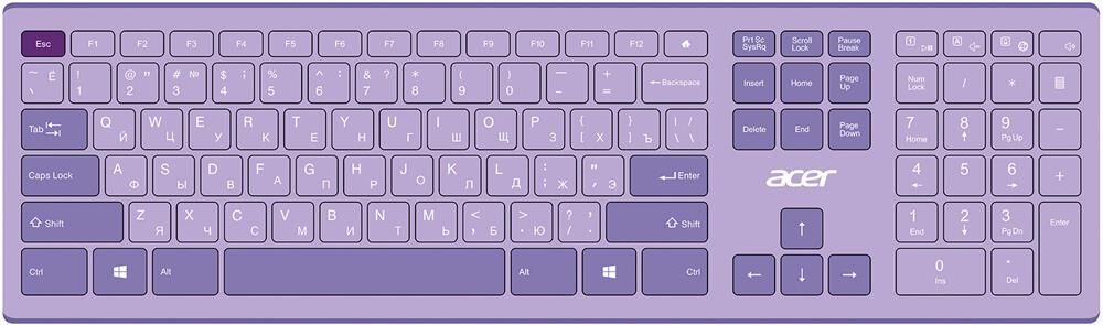 ACER Комплект (клавиатура+мышь) OCC205, USB, беспроводной, фиолетовый [zl.accee.00d]