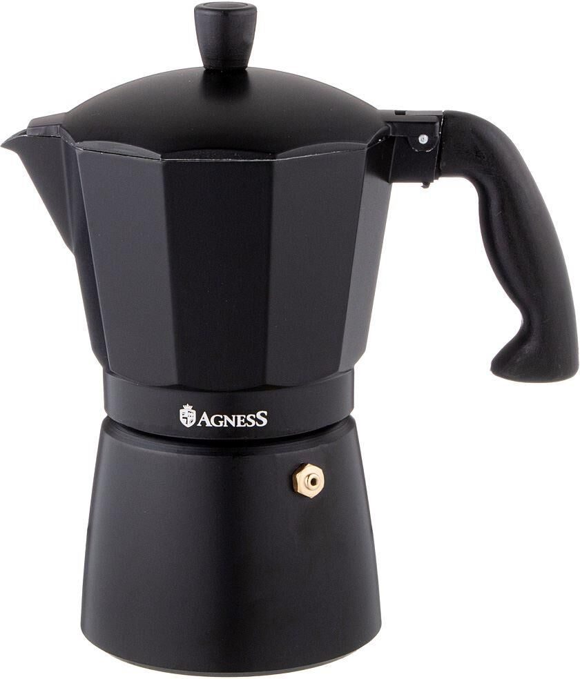 Гейзерная кофеварка ТМ AGNESS дарит возможность наслаждаться вкусным, ароматным и качественным кофе даже в домашних условиях. Напиток, приготовленный по принципу гейзера, получается более ароматным, чем фильтрованный кофе из капельных кофеварок. Основным преимуществом напитка из гейзерной кофеварки можно назвать отсутствие кофейной гущи, т.к. сама конструкция изделия исключает попадание осадка в сосуд для готового кофе. Эргономичная ручка очень удобна и позволяет не обжигаться. Кофеварку можно использовать на электрических, газовых или стеклокерамических видах плит. Конструкция кофеварок гейзерного типа настолько универсальна и проста, что такой прибор можно использовать дома, в офисе и даже при выезде на природу.
