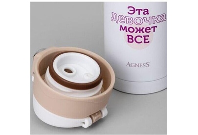 Термокружка AGNESS - незаменимый помощник в повседневной жизни. Будь это дальняя поездка, обычная прогулка или просто рабочий день в офисе - любимый напиток всегда с собой. Двойные стенки из нержавеющей стали, благодаря технологии вакуумной термоизоляции, сохраняют напитки холодными или горячими в течение долгого времени. Дополнительная медная прослойкой между 2-мя стенками, увеличивает термоизоляцию на 10%. Герметичная крышка. Термокружку AGNESS удобно брать с собой, она легко поместиться в сумку или рюкзак. Не мыть в посудомоечной машине. Рекомендована ручная мойка. Термокружка считается годной, если после 6 часов хранения остаточная температура воды в ней будет около 60 С° (+/- 5 С°). Начальная температура воды должна быть 98-100 С°. Испытания должны проводится при комнатной температуре 21 С°