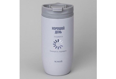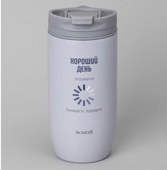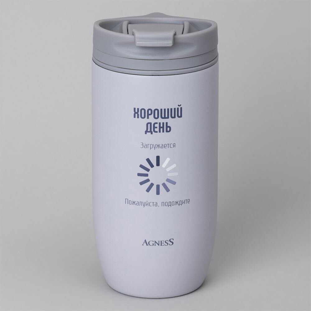 AGNESS ТЕРМОКРУЖКА "ХОРОШИЙ ДЕНЬ" 450МЛ, КОЛБА НЕРЖ.СТАЛЬ 18/10 709-114