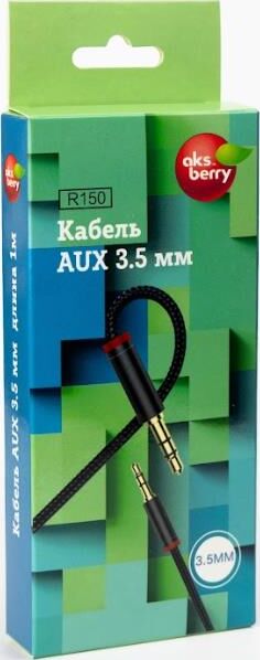 AKSBERRY (6900209120018) R150, jack 3.5mm-jack 3.5mm, круглый в тканевой оплетке,1м , черный