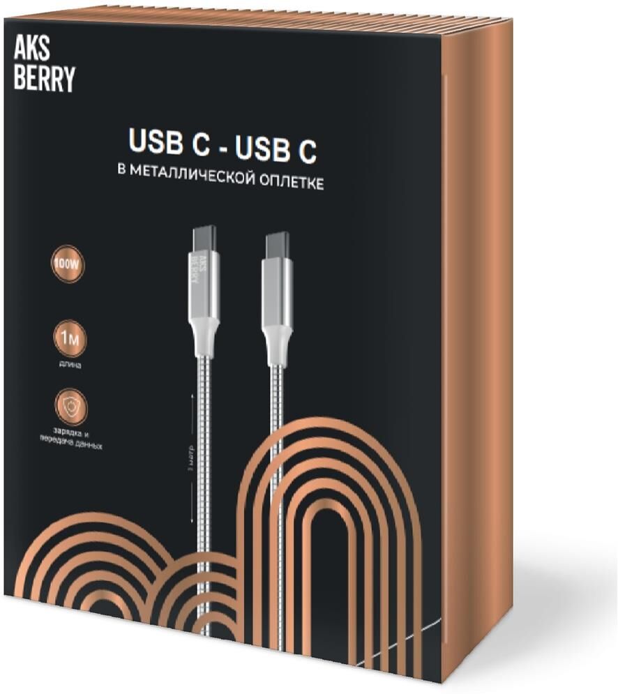 AKSBERRY (6900288580017) X161 Spring USB C - USB C, support 20V/5A, 100W, 1м в металлической оплетке