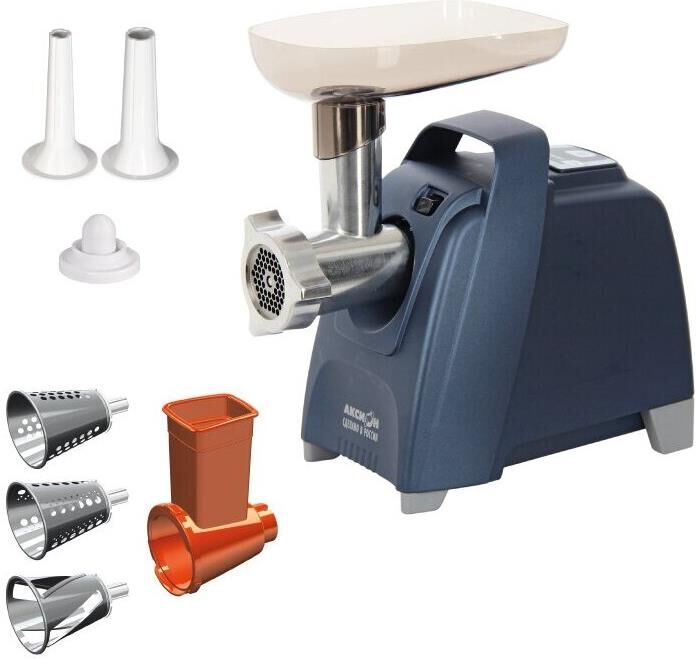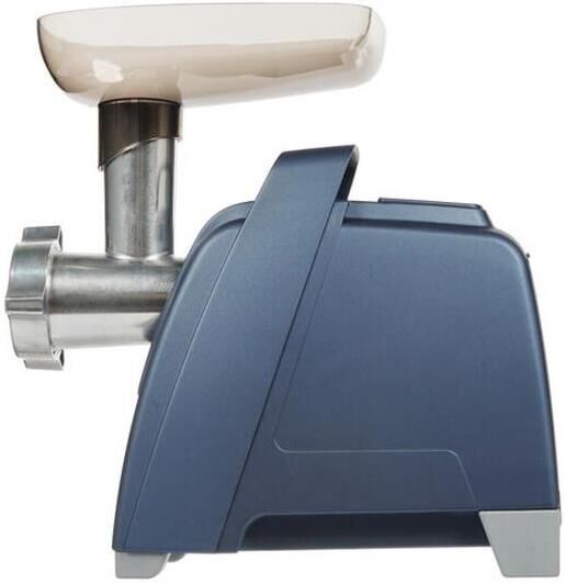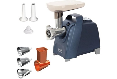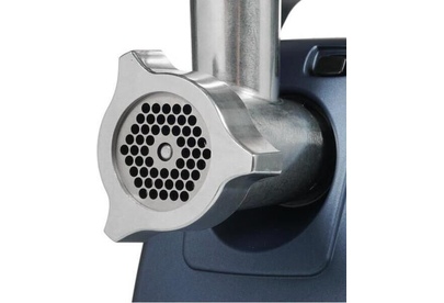 Максимальная мощность - 2000 Вт. Максимальная производительность – 4 кг/мин. В комплекте: приставка-овощерезка; нож с саблевидной режущей кромкой из нержавеющей стали; 1 решетка увеличенной толщины из нержавеющей стали с отверстиями O 4,9 мм; 1 за