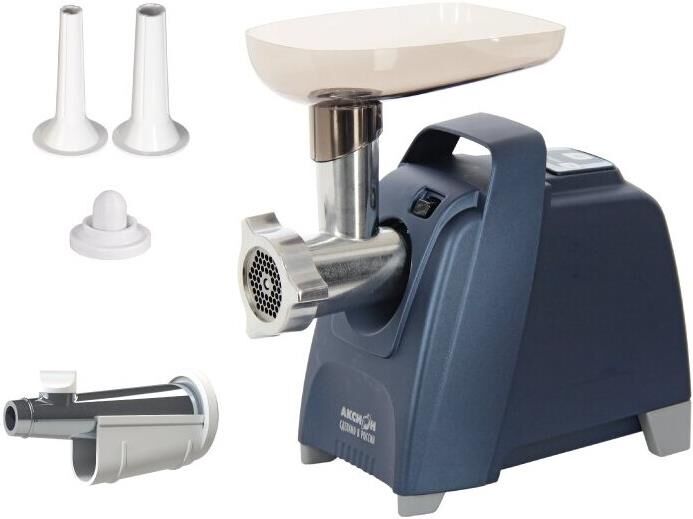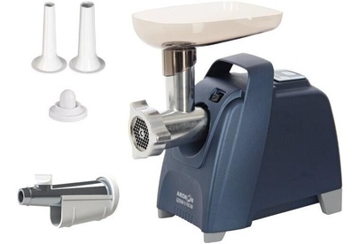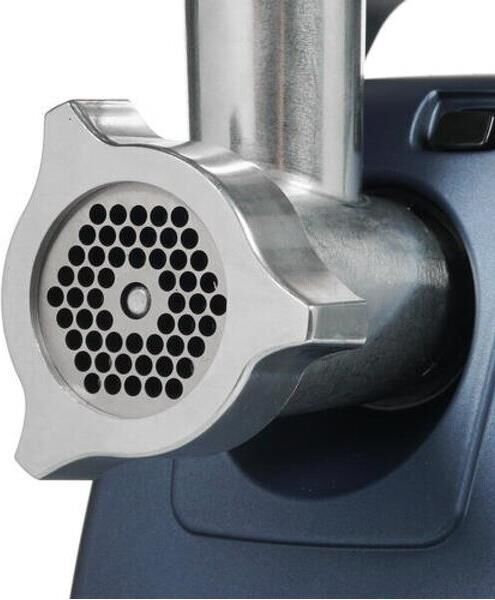 Максимальная мощность - 2000 Вт. Максимальная производительность – 4 кг/мин. В комплекте: шнековая соковыжималка; нож с саблевидной режущей кромкой из нержавеющей стали; 1 решетка увеличенной толщины из нержавеющей стали с отверстиями O 4,9 мм; 1