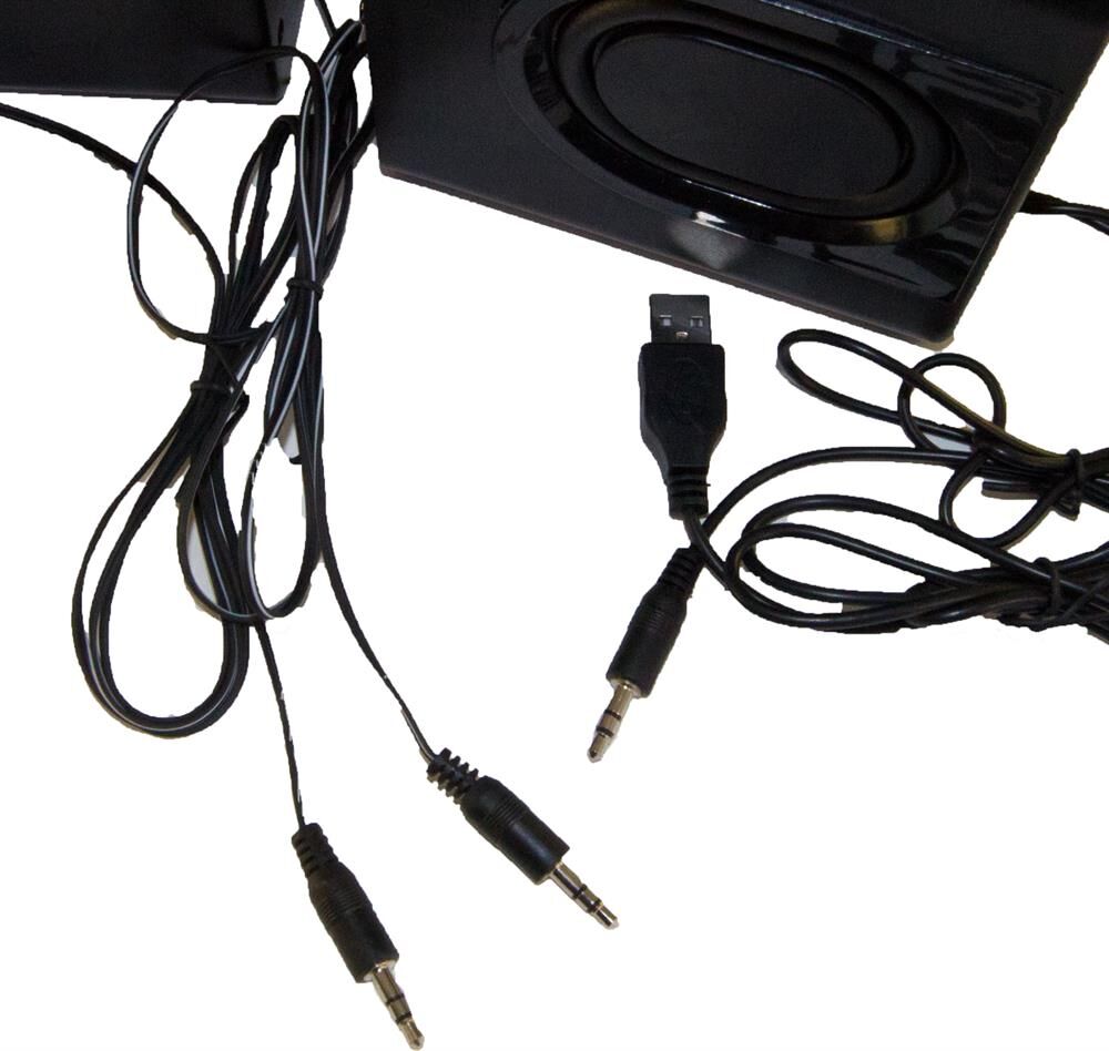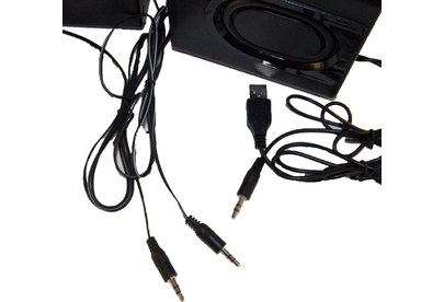 Суммарная выходная мощность (RMS) -16 Вт, мощность сабвуфера (RMS) -10 Вт, мощность сателлитов (RMS) -2х3 Вт, диапазон частот 50–20000 Гц, диапазон частот сабвуфера - 50–200 Гц, диапазон частот сателлитов -200–20000 Гц, аудиовходы- 3,5-мм джек.