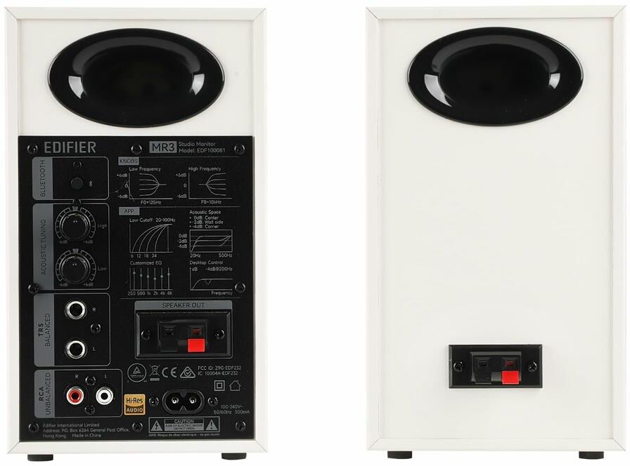 Суммарная звуковая мощность: 36. Основной цвет: белый. Акустический тип: 2.0. Материал корпуса колонок (фронт): MDF. Количество полос фронтальных колонок: двухполосные. Стерео-вход AUX INPUT: есть. Разъем для наушников: есть. Общий вес: 3.85. Отношение сигнал/шум: 85. Тип электропитания: от сети. Расположение регуляторов: на задней панели. Особенности: Плоская АЧХ. Сертификация Hi-Res Audio. Несколько вариантов акустической настройки. Корпус из МДФ. 3,5-дюймовые средне-низкочастотные динамики и 1-дюймовые шелковые купольные твитеры. Обработка звука с высоким разрешением 24 бит / 96 кГц. Работает с мобильным приложением EDIFIER ConneX. Тип беспроводного подключения: Bluetooth. Габариты упаковки (ед) ДхШхВ: 0.415x0.175x0.31. Вес упаковки (ед): 5.5. Страна производства: Китай. Гарантия: 12 мес.. Частотный диапазон: 52 Гц - 40 КГц. Размер фронтальных колонок (ШхВхГ): 125.5 х 220 х 185 мм. Мощность фронтальных колонок: 2. Суммарная звуковая мощность: 36 Вт. Цвет: белый. Тип: 2.0; Bluetooth. Регуляторы: на задней п