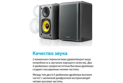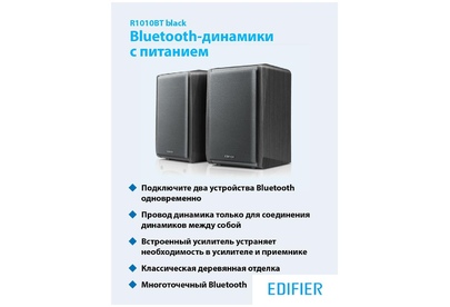 Колонка (пара). 2 динамика. Bluetooth 5.1. Частотная характеристика 65Гц-17кГц. В комплекте: колоночный кабель, аудио кабель 3.5мм-RCA, аудиокабель 3.5 (F)-RCA, инструкция пользователя.