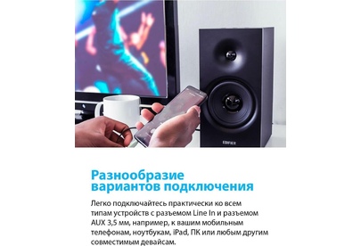 Колонка (пара). 2 динамика. Выходная мощность: 24 Вт. Частотная характеристика: 67 Гц-20кГц. Bluetooth 5.0. В комплекте: аудиокабель, инструкция пользователя.
