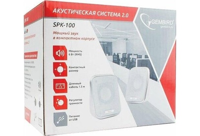 Акустическая система, мощность 6 Вт (RMS), диапазон воспроизводимых частот: 120 - 20 000 Гц, сопротивление: 4 Ом, тип разъема: штекер 3.5 мм, регулятор громкости, питание от USB, длина кабеля: 1.5 м