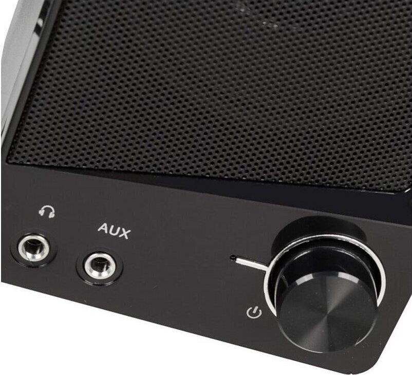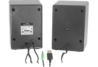 Акустическая система, суммарная звуковая мощность 6 Вт, частотный диапазон150Гц-20КГц, отношение сигнал/шум 60 дБ, количество фронтальных колонок - 2, электропитание USB, габаритные размеры - 85x125x80 мм.