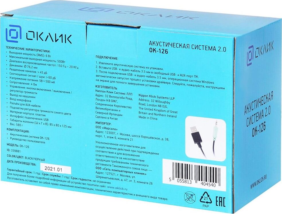 Акустика OKLICK OK-126 2.0 черный