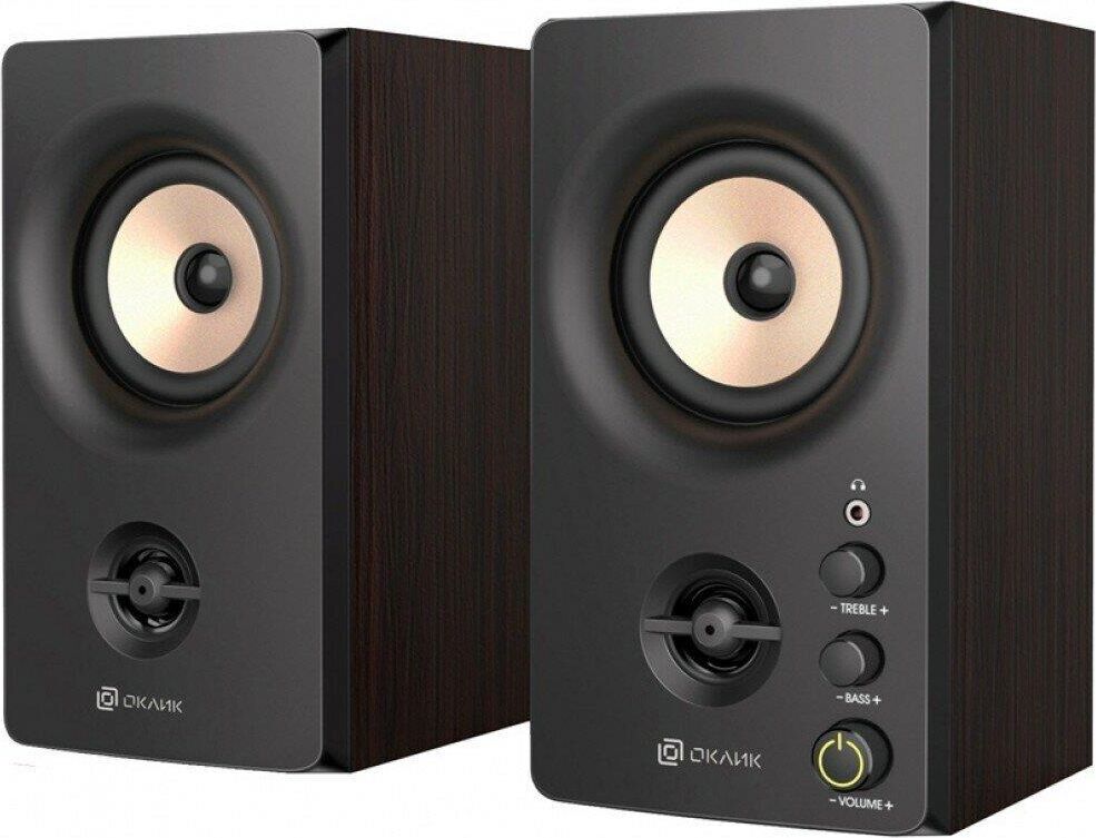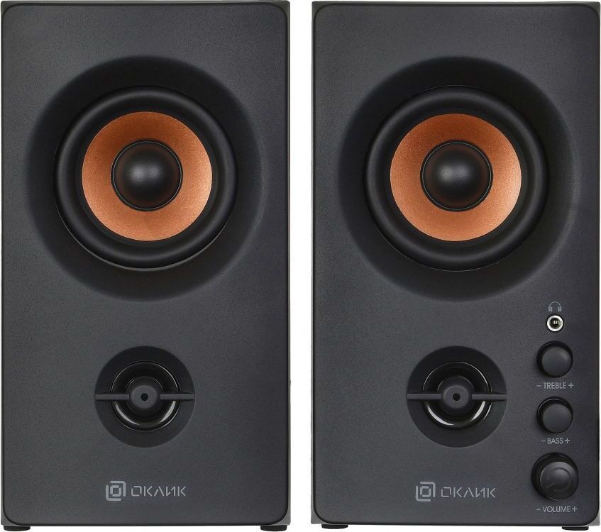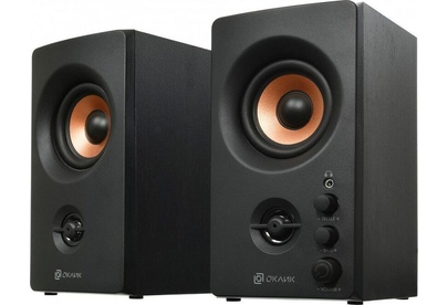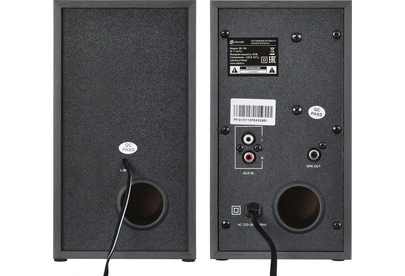 Достаточно мощные колонки для прослушивания музыки с компьютера, проигрывателя, ноутбука. Одно из основных преимуществ колонок заключается в расположении органов управления на лицевой панели. В колонках установлено по 2 динамика ВЧ и СЧ, что непосредственно влияет на качество воспроизведения. К акустической системе можно подключить гарнитуру. Лицевая панель колонок изготовлена из пластика, а корпус сделан из MDF. Суммарная звуковая мощность: 30 Вт. Частотный диапазон: 150Гц-20КГц. Отношение сигнал/шум: 65 дБ. Количество фронтальных колонок: 2. Тип электропитания: от сети. Материал: mdf/пластик. Размеры фронтальных колонок: 128*200*110 мм. Общий вес: 2,37 кг.