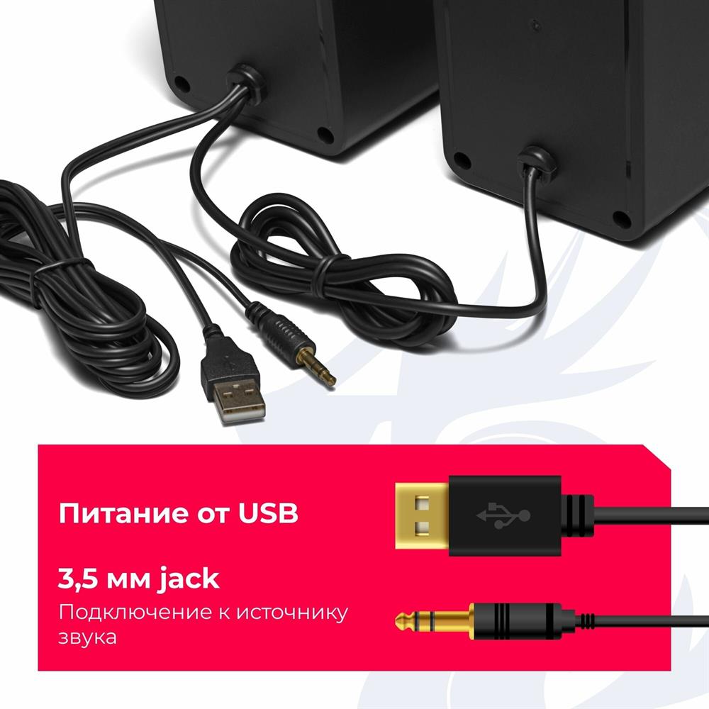 Светодиодная подсветка Регулятор громкости звука - Вам не придется переключаться на управление вашим плеером, чтобы увеличить или уменьшить звук. Регулируйте громкость одним движением Питание от порта USB - Колонки не требуют сетевого источника питания. Просто подключите колонки к USB-разъему компьютера и наслаждайтесь звуком. Данная модель оборудована интегрированной звуковой картой, поэтому не требует подключение к аудио разъему компьютера Выключатель питания