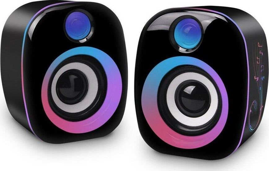 Плавный перелив цветов по всему корпусу колонок .Колесико регулировки громкости расположено на пульте на кабеле. Питание от USB. Характеристики Мощность 6 Вт Диаметр динамиков 50мм Диапазон воспроизводимых частот 200 Гц - 20 кГц