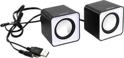 Портативная акустическая система,архитектура: 2.0, интерфейс соединения: проводное, 3.5 мм, максимальная выходная мощность (R.M.S.): 4 Вт, импеданс (Ом): 4 Ом±5%, размер динамиков (мм): 50 мм, диапазон воспроизводимых частот (Гц): 180 Гц — 20 кГц, питание: USB, материал корпуса: матовый пластик.